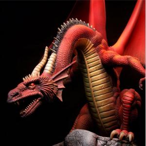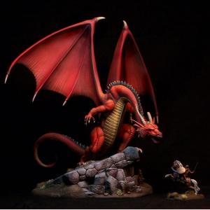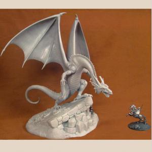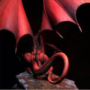 This massive Elmore dragon is over 500mm long from snout to tip of its tail and is over 310 mm tall (over 12 inches) from the bottom of its diorama base to the tip of its wings in its crouching pose.The wings measure well over 300mm from the side of one wing to the side of the other wing. This is a big beefy dragon with lots of body mass like the source artwork from Larry Elmore.The resin dragon itself with display base weighs over 2.5 pounds alone.